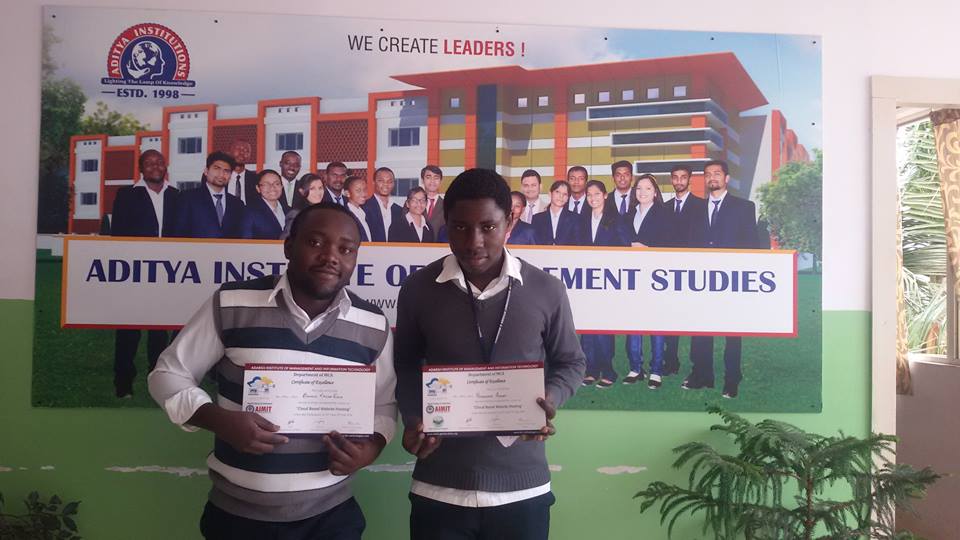 AIMS&R congratulates Mr. David and Mr. Ayodeji, students of Department of BCA, on successful completion of 2 day symposium on “CLOUD BASED WEB HOSTING” conducted by Adarsh Institue of Management and Information Technology 12-03-2016 and 13-03-2016