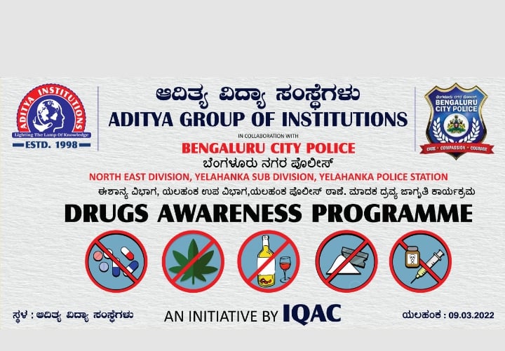 Drugs Awareness Programme – by Bengaluru City Police, organised by Aditya Group of Institutions on 9th March 2022. April 26, 2022Eventsadmin